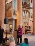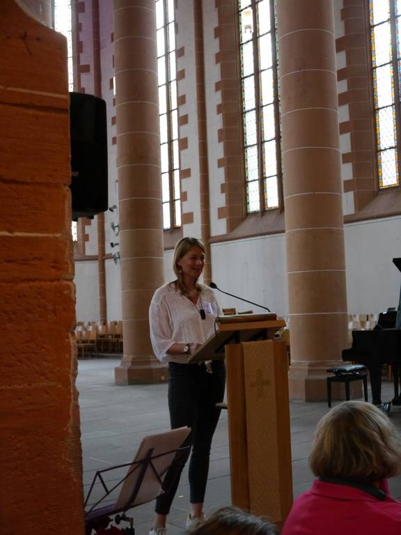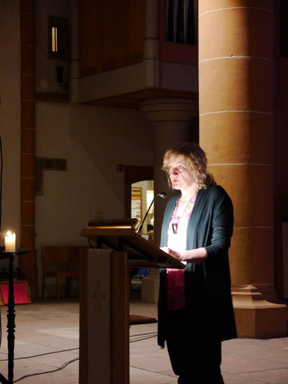 Die erste Bischöfin der Badischen Landeskirche, Prof. Dr. Heike Springhart, verknüpfte in ihrer Rede über ihr Leben sehr bildlich Brüche im Leben mit Schönheit, Licht und Freiheit mit einem Verweis auf Leonard Cohen: „There is a crack in everything, that’s how the light gets in“. So beschreibt sie auch Kirchenruinen als Symbolbild für die Kirche und Gesellschaft – „egal in welchem Zustand die Gemäuer und die Strukturen sind [..] – es bleibt immer etwas offen.“