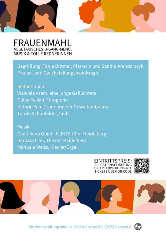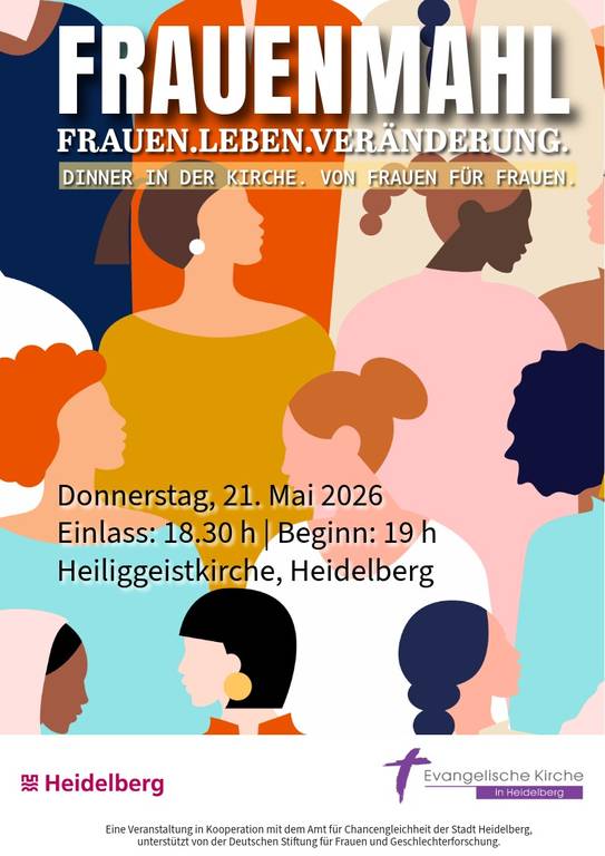 Das Frauenmahl ist eine Veranstaltung der Evangelischen Kirche in Heidelberg in Kooperation mit dem Amt für Chancengleichheit der Stadt Heidelberg, unterstützt von der Deutschen Stiftung für Frauen und Geschlechterforschung.