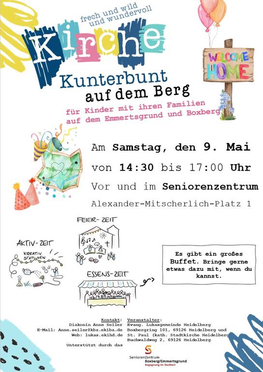 Fröhlich feiern, experimentieren, forschen, kreativ gestalten und dabei über Gott und die Welt ins Gespräch kommen: das wollen wir bei der Kirche Kunterbunt. Und natürlich wird es auch lecker: Trage gerne was zu unserem Mitbringbuffet bei, wenn du magst.