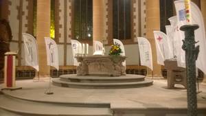 Erste Bauhütte an der Heiliggeistkirche existierte von 1936 bis 1956 – 2023 soll der Boden im Mittelschiff mit provisorischem Holzpodest angehoben wer