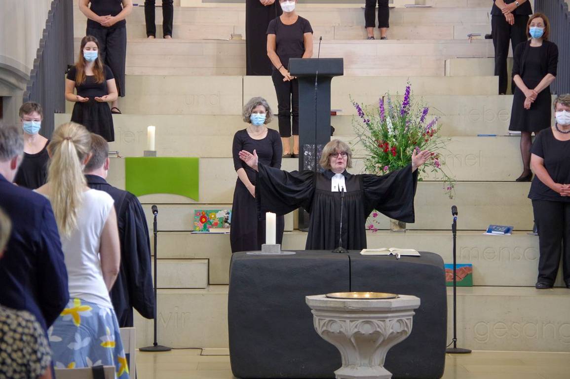 Heidelberg, 04.07.2021. Eine gehörige Portion Wehmut war mit dabei, als die Friedensgemeinde sowie Freund*innen und Wegbegleiter*innen sich am Sonntag (4. Juli) von ihrer Pfarrerin Martina Steinbrecher verabschiedeten. Fast auf den Tag genau vor sechs Jahren hatte sie in der Friedensgemeinde angefangen, hatte mit ihrer Nähe zu den Menschen, mit kreativer Experimentierlust und eindrücklichen Predigtworten schnell die Herzen der Menschen erobert.