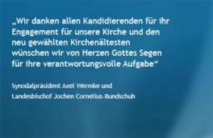 Karlsruhe, 02.12.2019. Nach der Wahl der etwa 4.500 Kirchenältesten am 1. Advent (1.12.) haben sich Synodalpräsident Axel Wermke und Landesbischof Jochen Cornelius-Bundschuh bei allen Wählerinnen und Wählern bedankt. „Wir danken allen Kandidierenden für ihr Engagement für unsere Kirche und den neu gewählten Kirchenältesten wünschen wir von Herzen Gottes Segen für ihre verantwortungsvolle Aufgabe“, erklärten beide zugleich.