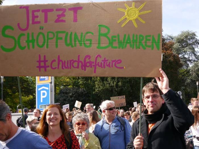 Heidelberg, 20.09.2019. Am heutigen Aktionstag für das Klima zeigt auch die Evangelische Kirche in Heidelberg Gesicht. Dekan Dr. Christof Ellsiepen und Schuldekanin Dr. Beate Großklaus schlossen sich dem Demonstrationszug durch die Innenstadt mit einer klaren Haltung an: „Als Kirche stellen wir uns seit langem der Herausforderung, die Bewahrung der Schöpfung nicht nur in Predigten zu bedenken, sondern in unserem Handeln umzusetzen“, so Dekan Christof Ellsiepen.