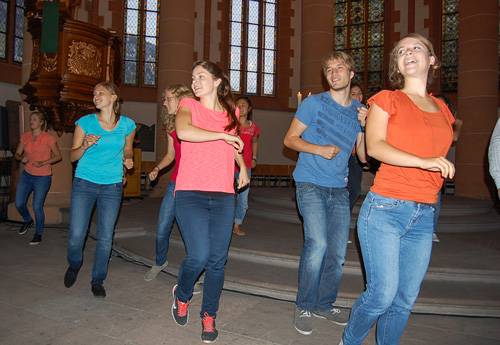 Heidelberg, 24.09.2014. „Here is my heart“- hier ist mein Herz! Mit diesem Spiritual in der Heiliggeistkirche bewegte die afrikanische Gesangsgruppe der Pfingstgemeinde aus Eppelheim beim internationalen Gottesdienst am 21. September die Zuhörer mit viel Hingabe und Frömmigkeit. Die kongolesischen Musiker beteten damit Gott im Lied an, und jeder sollte dies ebenso für sich im Herzen tun, ermunterte der Sänger die Gläubigen schwungvoll zum Mitmachen.