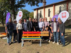 Heidelberg, 11.10.2023. In einer gemeinsamen Aktion des Caritasverbandes Heidelberg e.V. und des Diakonischen Werkes der Evangelischen Kirche Heidelberg, der katholischen Stadtkirche und der Evangelischen Kirche in Heidelberg, wurde ein starkes Zeichen gegen Ausgrenzung und Rassismus im Ankunftszentrum für Geflüchtete Patrick-Henry-Village (PHV) in Heidelberg gesetzt.