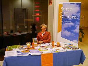 In der Pause stellte Prinzessin Isabel zu Löwenstein an einem bunten Infotisch das umfassende Angebot der Glaubenskurse in diesem Jahr und auch zum Reformationsjubiläum 2017 vor. An „Sonnenplätzen und Quellorten“ können Interessierte ein vielseitiges Angebot finden, um sich auf die Spuren der Reformation zu begeben und Stufen des Lebens zu erklimmen.Der Geschäftsführer der Kirchenverwaltung Dietrich Dancker stellte die neuen Budgetierungsregelungen vor, die ab dem Doppelhaushalt 2016/17 zur Anwendung kommen. So werden die Kirchensteuerzuweisungen nach Gemeindegliederzahl hälftig an die Pfarrgemeinden und den Stadtkirchenbezirk gehen. Die Pfarrgemeinden müssen zukünftig die Kosten für Ihre Wartungsverträge selbst tragen, dafür dürfen sie alle Einnahmen aus Vermietungen vollständig behalten. Verhandlungen mit der Stadt (Veränderung der Öffnungszeiten, der Eingruppierungen, Pro-Platz Bezuschussung der Stadt) ergeben im Kindergartenjahr 2016/17 signifikante Mehreinnahmen, womit das Defizit im Haushalt des Kitabereichs deutlich verringert werden kann.