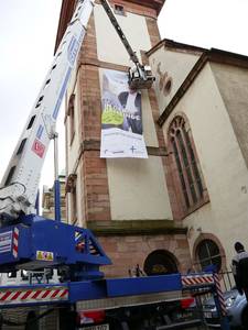 Im März hat die badische Landeskirche die Kampagne bereits in Freiburg gestartet und führt sie jetzt im Rhein-Neckar-Raum fort. Weitere großflächige Banner sollen in den nächsten Monaten an markanten Kirchtürmen in ganz Baden hängen, u. a. am Turm der Stiftskirche in Bretten.