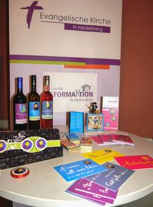 Eigens für das Jubiläum hat die Evangelische Kirche in Heidelberg besondere Geschenkartikel rund um die Reformation kreiert, die einen Bezug zur Region haben. So gibt es eine „ReformaKtionsschokolade“ von Zotter in zwei Geschmacksrichtungen, einen „Heidelberger Lutherkuss“ in Anspielung auf den Studentenkuss der Chocolaterie Knösel, zehn Postkartenmotive mit Zitaten der Reformatoren sowie eine limitierte Wein-Kollektion mit Weinen aus der Region. Diese Geschenkartikel können in der Bürgerhütte auf dem Heidelberger Weihnachtsmarkt vom 9. bis 11. Dezember 2016 sowie beim Infostand in der Heiliggeistkirche erworben werden.