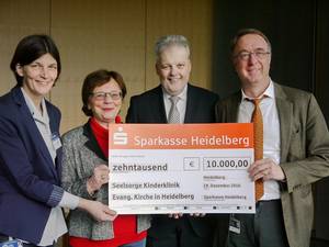 Heidelberg, 19.12.2016. Mit einer großzügigen Spende von 10.000 Euro unterstützt die Sparkasse Heidelberg das Seelsorgeangebot der evangelischen Kirche in der Heidelberger Kinderklinik. Mit dieser Unterstützung ist die Finanzierung der Stelle für weitere 6 Monate gesichert. Langfristiges Ziel der Evangelischen Kirche in Heidelberg ist es, ihr Seelsorgeangebot dauerhaft an der Kinderklinik zu etablieren.