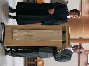 Dem Kurfürsten Friedrich III. wurde es daraufhin zu bunt mit den Auseinandersetzungen über den protestantischen Glauben. Er beauftragte Zacharias Ursinus, ein Schüler Calvins, ein Lehrbüchlein über die Hauptinhalte des christlichen Glaubens zu schreiben. Dieses kleine Büchlein wurde dann in Schulen und Gottesdiensten zur Grundlage über Fragen des Glaubens genutzt. Im Januar 1563 wurde dieses Buch mit seinen 129 Fragen und Antworten in der Heiliggeistkirche eingeführt und vorgestellt.Vor vier Jahren, 2013, haben wir das 450jährige Jubiläum dieses weltweit bekanntesten Lehrbüchleins über den christlichen Glauben groß gefeiert. Immer wieder fragten uns damals und auch bis heute Touristen aus aller Herren Länder: „Wo gibt es eine Gedenktafel für den `Heidelberger´?“ Bis zum heutigen Tag mussten wir schulterzuckend und bedauernd antworten: „Leider nirgends in dieser Kirche“. Fast ein bisschen peinlich wurde uns diese Aussage. Aber nun gibt es die Tafel. Der Ältestenkreis der Altstadtgemeinde und die Bezirksgemeinde haben die Erinnerungskultur ernstgenommen. Wir freuen uns sehr darüber.