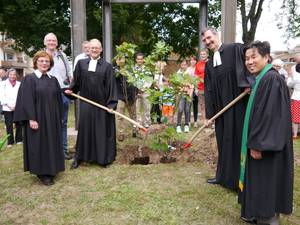 Die ehemalige Pfarramtssekretärin Christiane Kaltschmitt wünschte der fusionierten Gemeinde „genug Raum für eine gemeinsame Heimat“. Vincenzo Petracca, ehemaliger Pfarrer in der Wicherngemeinde, sprach von einer „Ehe, in der sich einiges erst finden und manches verändern wird“. In jedem Fall wünschte er den frisch vermählten Gemeinden ein gutes Eheleben.„Als ich vor 7 Jahren nach Kirchheim kam, gab es noch Befürchtungen, von der anderen Gemeinde über den Tisch gezogen zu werden“ beschreibt Pfarrer Albrecht Herrmann den 2006 eingeleiteten und nicht immer einfachen Fusionsprozess. Im Bemühen um Klärung fanden die Gemeinden Hilfe bei Mediatorinnen und Moderatoren.