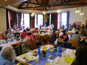 Dass dieses Festmenü den anwesenden Gästen gemundet hat, ist offensichtlich: „Es hat geschmeckt wie in einem feinen Restaurant“, seufzt Gabriele Meyer aus Leimen zufrieden. „Hier bin ich nicht arm, sondern glücklich!“ Ein 74jähriger Gast aus Mannheim ist so begeistert, dass er spontan aufspringt und zum Rednerpult eilt. „Obwohl ich Atheist bin und nicht der Kirche angehöre, wurde ich hier sehr christlich und mit offenen Armen aufgenommen, das finde ich wunderbar!“, bedankt er sich beim Helferteam.„Helfer und Gäste geben und nehmen hier gleichermaßen“, erläutert Pfarrerin Sabine Hannak das Grundverständnis des NächstenMahls. Passend dazu hat sich nach einer Umfrage bei den Gästen das Helferteam zum 10jährigen Jubiläum für den neuen Bibelvers über der Küchentür entschieden: „Dient einander, jede und jeder mit der euch geschenkten Gabe“ wird dort von nun an zu lesen sein. „Damit wollen wir zeigen, dass wir alle besondere Gaben geschenkt bekommen haben, die wir einsetzen können, um einander Gutes zu tun. Das ist ein tolles Motto für unser NächtenMahl!“, freut sich die Pfarrerin und mit ihr alle Anwesenden über den gelungenen Tag.