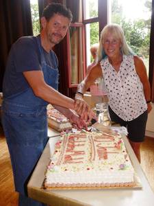 Küchenchef Thomas Schabert ist schon seit 8 Uhr unterwegs, um einzukaufen und Vorbereitungen mit seinem neunköpfigen Küchenteam zu treffen. „Nicht immer weiß ich vorher, was die Tafel für uns an Lebensmittelspenden bereit hält, Fleisch müssen wir natürlich dazukaufen, daher sind wir in unseren Menüplanungen auch mal spontan.“ Was das bedeutet, weiß der erfahrene Koch, der hauptamtlich die Kantine von John Deere in Mannheim mit 3500 Mitarbeitern leitet. „Heute war aber alles geplant: Als Vorspeise gab es Salat, als Hauptspeise gefüllter Schweinebraten mit Champignonsoße und Semmelknödeln und als Dessert die Jubiläumstorte und Eis.“