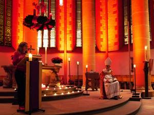 Und so begrüßen die rund hundert großen und kleinen Andachtsbesucher gemeinsam den Bischof Nikolaus mit dem Lied „Sei gegrüßt, lieber Nikolaus“, begleitet von Bezirkskantor Michael Braatz-Tempel an der Orgel. Als Pfarrerin Martina Reister-Ulrichs dann im Beisein des Nikolaus erzählt, wie er die ganze Stadt Myra von einer Hungersnot errettet hat, kann man eine Stecknadel in der Kirche fallen hören. Gebannt kleben Groß und Klein an den Lippen der Erzählerin und freuen sich mit dem Jungen Jonah und seiner Taube, dass alle Bewohner Myras durch die Hilfe ihres Bischofs schließlich wieder genug zum Leben hatten. Genau das ist auch die Intention des ökumenischen Nikolausfonds, für den die Kollekte beim „Singen für den Nikolaus“ bestimmt ist. Denn aus diesem Fonds werden Schulkinder aus Heidelberg bei Projekten, Freizeiten und dem Kauf von Schulmaterialien oder Essensmarken unterstützt. Den Antrag stellen Lehrer der jeweiligen Schulen, an die sich Eltern betroffener Kinder vertrauensvoll wenden können.