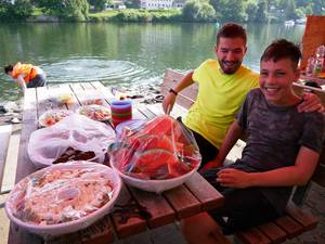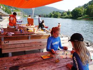 „Bei der Hitze ist paddeln super“, findet die 10jährige Greta, die zum ersten Mal mit Begeisterung dabei ist und zur Abkühlung erstmal in den Neckar hüpft. „Am liebsten würde ich die ganze Woche lang Ausflüge mitmachen, Kajakfahren macht echt Spaß!“ Da muss sie sich fürs nächste Jahr ranhalten, denn die Touren werden immer im Februar/März auf die Homepage des Jugendtreffs Ziegelhausen gestellt und sind dann schnell ausgebucht.