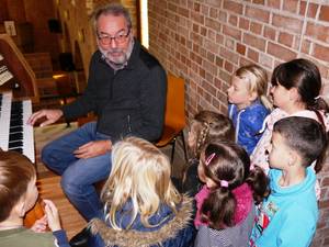„Um 9 Uhr kommen die Kinder hier an und verteilen sich auf die Workshops, wobei wir darauf achten, dass jeweils Kinder aus allen Schulen in den Gruppen sind“, erläutert Pfarrer Andreas Schlögel den Tagesablauf. Dazu gehören die beiden Regelschulen Albert-Schweitzer und Elisabeth-von-Thadden Grundschule sowie die beiden Förderschulen Graf von Galen- und Stauffenbergschule. Auf dem Programm stehen biblische Themen wie „die Reise nach Jericho“ und eine Kirchenrallye, bei der die kleinen Detektive allerlei über die Auferstehungskirche, ihre Orgel und ungewöhnliche Turmbewohner erfahren. Neu ist in diesem Jahr der Bastelworkshop im Zelt auf dem Kirchhof, wo die jungen Handwerker sich nach Herzenslust mit Säge, Hammer und Schleifpapier ausprobieren können. „Dann haben wir noch unsere Gastrogruppe mit älteren Schülern aus der Berufsstufe der Graf von Galen-Schule, die ganz begeistert beim Tischdenken und Austeilen des Mittagessens mithelfen“, schließt Pfarrer Schlögel den bunten Angebotsreigen. Ohne die vielen helfenden Hände wäre diese einzigartige Aktion im Pfaffengrund allerdings nicht möglich. „Es ist einfach immer wieder eine wunderschöne Erfahrung, die vielen glücklichen Kinder hier zu erleben und wir sind stolz darauf, die Kirche für Kids bei uns in der Gemeinde zu haben“, findet Brigitte Steiler, die seit fünf Jahren im Orgateam mithilft. Insgesamt 12 ehrenamtliche Helferinnen und Helfer der Emmausgemeinde stehen an vier Tagen ab 8:30 Uhr in der Küche des Gemeindehauses und bereiten liebevoll das Frühstück, Obstteller und den Nachtisch vor. „Das Mittagessen wird vom Caterer geliefert, aber bis alles wieder sauber ist, kann es schon mal drei Uhr werden“, weiß die Helferin. „Mich begeistert das super Team, diese Kirchengemeinde strahlt eine Dynamik aus, die ich bewundere“, schwärmt Stadionsprecher Udo Scholz von den Mannheimer Adlern. Seit der Premiere von „Kirche für Kids“ im November 2015 sponsern die „Adler helfen Menschen e.V.“ das Mittagessen und die Bastelmaterialien, die Getränke werden von der Odenwaldquelle gespendet. „Vom Engagement dieser Vorzeigegemeinde könnten sich manch andere ein Stückchen abschneiden, dann gäbe es viele glückliche Kinder in der Metropolregion“, findet Scholz, der seit vielen Jahren auch die Kindervesperkirchen in Mannheim und Ludwigshafen begleitet. „Der Schatz dieses Projektes ist das inklusive pädagogische Konzept. Kinder aus allen vier Schulen des Stadtteils kommen hier zusammen und lernen mit- und voneinander. Die Kids tun auch den Ehrenamtlichen gut – mit ihren frohen Gesichtern sagen sie: ‚Wir geben hier unser Bestes‘. Kirche für Kids ist eben auch Kids für Kirche“, freut sich Schuldekanin Dr. Beate Großklaus über das Engagement in der Emmausgemeinde. „Wir sind stolz darauf, dass es uns in fünfjähriger Zusammenarbeit mit den Schulen gelungen ist, eine tolle Vernetzung untereinander zu schaffen und den Kindern somit einzigartige Inklusionsbegegnungen zu ermöglichen“, freut sich Pfarrer Schlögel. „Außerdem haben alle Kinder, die im Pfaffengrund in die Schule gegangen sind, auf diese Weise mindestens eine hoffentlich positive Berührung mit unserer Gemeinde gehabt.“-
