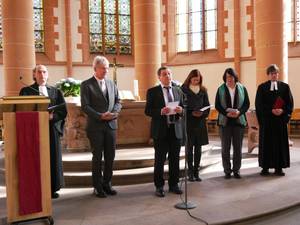 Heidelberg, 09.02.2020. Mit einem feierlichen Gottesdienst eröffnete die Evangelische Kirche in Heidelberg gemeinsam mit Bischofsstellvertreterin Cornelia Weber in der Heiliggeistkirche das Hermann-Maas-Jahr. „Es ist der Inbegriff unserer Kultur, einander zu achten“, so Dekan Christof Ellsiepen in seiner Begrüßung. „Hermann Maas hat viel mehr getan. Es ging ihm immer um ein `Mitleben´, und das setzt Verständnis und Begegnung voraus und kann in freundschaftliche Verbundenheit münden.“ Ein Jahr im Sinne von Hermann Maas, das sei Erinnern und zugleich gemeinsames Einüben dieser Haltung des Mitlebens und auch des Mitbetens, so der Dekan weiter. „Und ich wünsche mir, dass wir uns dabei zugleich von Hermann Maas anregen lassen zu einer Haltung der Versöhnung, zum Dialog und zur Liebe.“