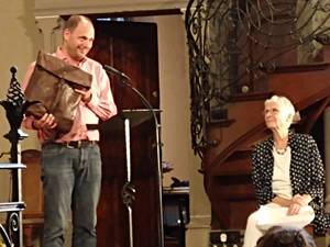 Einen Lederrucksack vom Ältestenkreis gibts zum Abschied