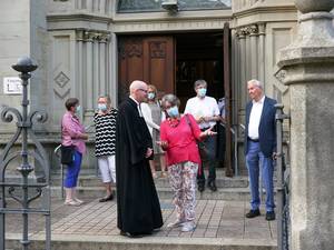 Dass an diesem Tag neben allen fröhlichen Erinnerungen die Traurigkeit über den Weggang von Maximilian Heßlein überwog, war in den Gesichtern der versammelten Gemeindeglieder zu lesen. Dekan Christof Ellsiepen würdigte ihn in seiner Ansprache als einen Kollegen, „der sagt, was er denkt und tut was er sagt, auch wenn das bedeutet, die inneren und äußeren Spannungen auszuhalten“. Schuldekanin Beate Großklaus dankte ihm für seinen engagierten Religionsunterricht zunächst in der Landhausschule und zuletzt in der Pestalozzischule, den er bis zu seinem Wechsel nach Mannheim mit Begeisterung ausübte. Die Erzieherinnen des Fröbel-Kindergartens gaben ihrem Pfarrer, der sich auch während Corona immer Zeit für einen freundlichen Gruß durch die Fensterscheibe nahm, einen Korb voller Erinnerungen mit auf den Weg nach Mannheim.
