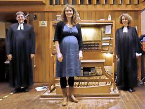 Frau Vogt dirigierte den Crossover-Chor, der mit „Sing dem Herrn ein neues Lied“ von Bernd Stegmann und „I will praise thee o Lord“ von Knut Nystedt dem Herrn gleich zwei eindrückliche neue Lieder sang. Beim Orgelnachspiel brillierte Frau Vogt mit „Fly away“ von Barbara Dennerlein, eigentlich für eine Hammond-Orgel geschrieben – bis die Steinmeyer-Orgel beim allerletzten Ton offenbarte, dass sie die anstehende Sanierung, von der die Gemeinde an dem Abend erstmals erfuhr, wirklich nötig hat: Mit „Der Ton hängt!“ verabschiedete Frau Vogt die lachenden Gottesdienstbesucher*innen zum anschließenden Sektempfang.