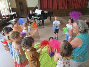 Mit ihm am Flügel konnten die Kinder „die vier Jahreszeiten“ kennenlernen: sie lauschten in Kleingruppen den Klängen der Frühlingssonne, hörten die Vögel zwitschern, erlebten das Sommergewitter und die Herbststürme, und wurden im Winter musikalisch vom Schnee zugedeckt. All das konnten die Kinder auch im szenischen Spiel umsetzen, so dass eine ganzheitliche Sinneserfahrung die Kinder nachhaltig beeindruckte.