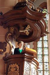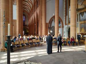 Umgekehrt dürften aber auch Religionsgemeinschaften sich keine staatlichen Funktionen anmaßen – auch wenn sie etwa im sozialen Bereich subsidiär wie andere Träger staatliche Aufgaben übernehmen. "Kurz gesagt: Kirche und Staat, Politik und Religion haben jeweils eine eigene Funktion im Ganzen der Gesellschaft. Und es ist wichtig, über die jeweiligen Grenzen in einem offenen Dialog und wenn nötig auch in einer Auseinandersetzung zu sein. Deshalb freue ich mich sehr, dass Sie, liebe Frau Brantner, dass Sie uns einen Impuls durch Ihre Kanzelrede geben und wir im Anschluss an den Gottesdienst darüber weiter ins Gespräch kommen können", schloss der Dekan seine Begrüßung und Einführung in das Thema.