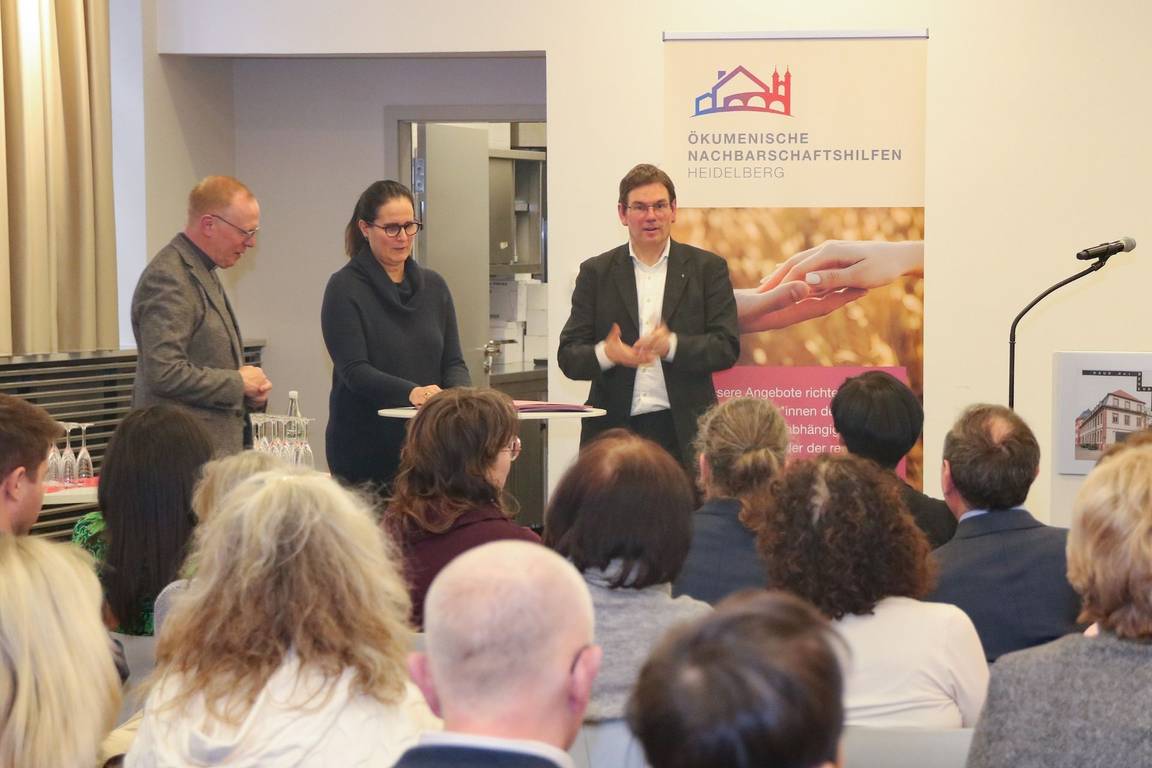 In einer Feierstunde am 1. März übergaben die katholische und die evangelische Kirche die Trägerschaft ihrer Nachbarschaftshilfen an den Caritasverband Heidelberg. Veränderungen in den kirchlichen Strukturen, steuerrechtliche und organisatorische Vorgaben hatten es notwendig gemacht, dieses ehrenamtliche Engagement neu aufzustellen und so auf Dauer Qualität und fachliche Begleitung zu sichern. Vor drei Jahren seien die beiden Kirchen auf den Caritasverband zugegangen und hätten erste Gespräche geführt, skizzierte Dekan Dr. Christof Ellsiepen kurz die Geschichte des Wechsels der Trägerschaft. Nach einer zweijährigen erfolgreichen Erprobungsphase konnte der Trägerwechsel jetzt offiziell vollzogen werden. „Am Ende waren wir überzeugt, das trägt sich, das ist sehr gut beim Caritasverband aufgehoben“, so Ellsiepen.
