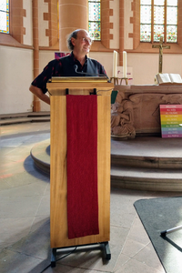Citykirchenpfarrer Vincenzo Petracca spürte in seiner Predigt der Theologie und Spiritualität der berühmten Sängerin nach: „Taylor ist bekennende Christin. Ihr Glaube kennt zugleich Fragen, Zweifel und Zerrissenheit. Sie versteht das Christentum politisch. Aus diesem Grund tritt sie für die Recht von Frauen und queeren Menschen ein und prangert Diskriminierung und Rassismus an.“