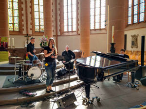 Heidelberg, 12.05.2024. Rund 1000 Gottesdienstbesuchende konnten an diesem Sonntag in zwei aufeinanderfolgenden Gottesdiensten in der Heidelberger Heiliggeistkirche die christliche Botschaft in den Songs von Taylor Swift in Wort und Musik mit eigenen Augen und Ohren erleben. Die Sängerin Tine Wiechmann (Vocal) interpretierte mit einer Band bestehend aus Christoph Georgii (Piano), Christoph Carl (Bass) und Jens Nobiling (Drums) sechs Songs der Pop-Ikone.