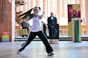 Unter Streetdance oder Urban Dance versteht man verschiedene Tanzstile, die in den 1970er Jahren auf den Straßen New Yorks entstanden sind. Wie genau die aussehen, zeigten Jugendliche im Gottesdienst bei mehreren Performances. Unter ihnen waren auch die neunjährige Aurelia Demaio, die amtierende Deutsche Meisterin U10 im Streetdance ist, und der Urban Dancer Zoo Real. Beide sehen den Streetdance als universelle Sprache.
