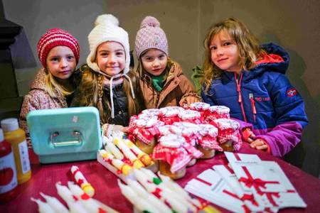 Auch die Vorschüler des Kindergartens waren mit großem Eifer dabei: sie wollten anderen Kindern helfen, wie es einst auch Bischof Nikolaus tat. Dafür hatten sie im Vorfeld im Kindergarten Kuchen im Glas gebacken, und Kerzen verziert. Diese wurden nun gegen eine Spende für den Nikolausfonds abgegeben.