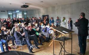 Das Erdgeschoss im Südturm der Marsilius-Arkaden beherbergt den +punkt: an das großzügige Foyer schließt sich auf der rechten Seite ein großer Saal für Veranstaltungen an, links geht es zu den Büros der Sekretariate von katholischer Klinikgemeinde und +punkt und zu weiteren, kleineren Konferenz- und Gruppenräumen.Über den Neuenheimer Campus hinaus will sich der +punkt auch als Ort interessanter Veranstaltungen für die Stadt etablieren. „Das ist für uns Neuland“, betonen die Leiter Nikolaus Schmerbeck und Sonja Knobloch. „Wir werden in den kommenden Monaten Erfahrungen sammeln müssen und herausfinden, welche Art von Veranstaltungen Zuspruch finden.“ Am 28. April um 19.30 Uhr hält der Mainzer Theologe Kristian Fechtner den Eröffnungsvortrag. Unter dem Titel „Wenn mich jemand so sieht!“ geht er dem Verhältnis von Scham und Religion auf den Grund. Am 31. Mai, ebenfalls um 19.30 Uhr, halten Martin Schleske und Alban Beikircher eine Konzertlesung: „Der Klang“. Einer der großen Geigenbauer der Gegenwart lässt die Phasen des Baus einer Geige zum Gleichnis für das Leben selbst werden. Text und Klang werden einander in einem lebendigen Wechselspiel ergänzen.