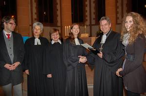 Dieser Vers passte gut zu ihrer neuen beruflichen Herausforderung, zum Übergang von der Schulpfarrerin am Elisabeth-von-Thadden-Gymnasium in das Dekanat der evangelischen Kirche. Dekanin Dr. Marlene Schwöbel-Hug hieß die 42-Jährige im Dekanatsteam herzlich willkommen und begrüßte eine große Gemeinde, darunter auch den Ehemann und die beiden Kinder der Theologin. Für ihr Amt bringe Beate Großklaus viel Erfahrung aus ihrer Tätigkeit als Schulpfarrerin mit, denn Schule mit all ihren unterschiedlichen Facetten sei ihr vertraut, so Schwöbel-Hug und betonte: „Liebe Beate, Du bist mit Leib und Seele Religionslehrerin und Theologin. Genau das brauchen wir in unserem Kirchenbezirk!“ Der Religionsunterricht werde in vielen Schulen an den Rand gedrängt, aus vielen unterschiedlichen Gründen, sagte Marlene Schwöbel-Hug: „Es ist unsere Aufgabe als Kirche zu zeigen, dass er Relevanz hat für unser Leben, für Werte, für unser Miteinander, für Hoffnung, die über die Spaßgesellschaft hinausweist und gleichzeitig klar macht, dass Freude und Spaß Teil unserer Religion und unseres Handelns sind.“ Im Leitungsteam müsse sich Beate Großklaus aber auch mit Strukturveränderungen auseinandersetzen und den Gemeinden diese Strukturveränderungen plausibel machen.